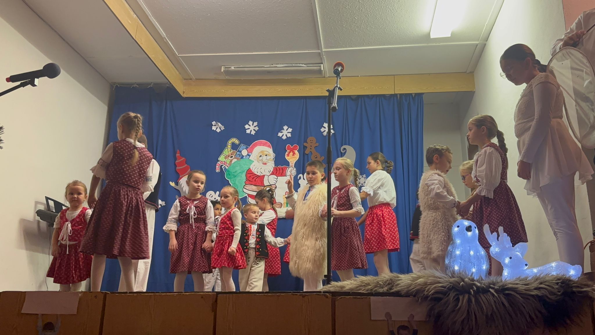 Po presune do kultúrneho domu pokračoval program vystúpeniami detí z Materskej školy. Najmenší predviedli nádherný tanček, básničku a pesničku, ktoré si mnohí pochvaľovali ako jedno z najkrajších vystúpení za posledné roky. Deti vystúpili so skutočnou odvahou a detskou úprimnosťou. O domácu, tradičnú atmosféru sa postarala Folklórna skupina Majirčan, ktorá vždy dokáže vniesť na pódium kúsok našej identity a srdečnosti.